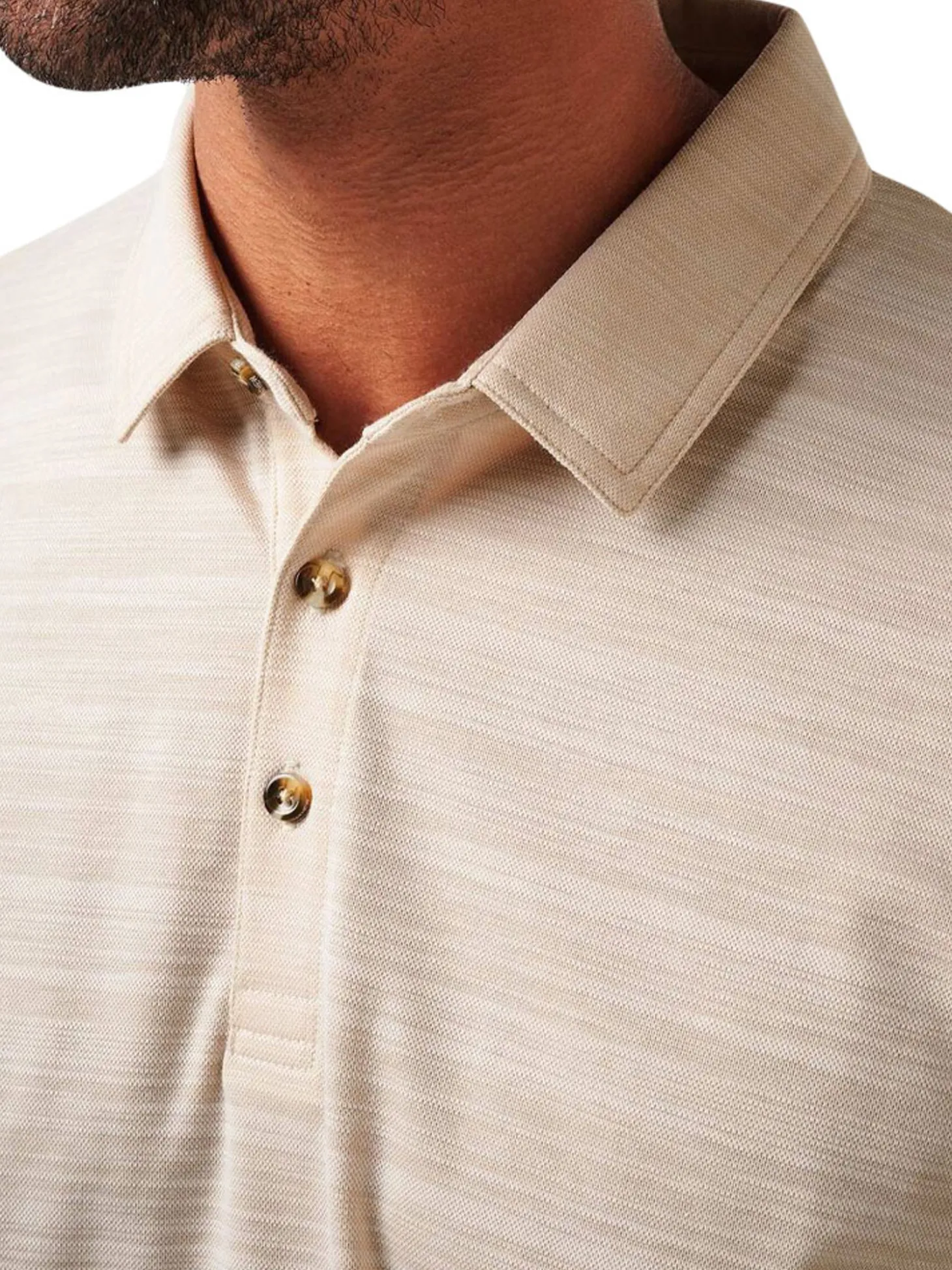 The TravisMathew West End Polo (Sand) is designed with a subtle slub texture, a scooped hemline, and a woven label on the right hip for a polished finish. The kind of polo you’ll reach for again and again.