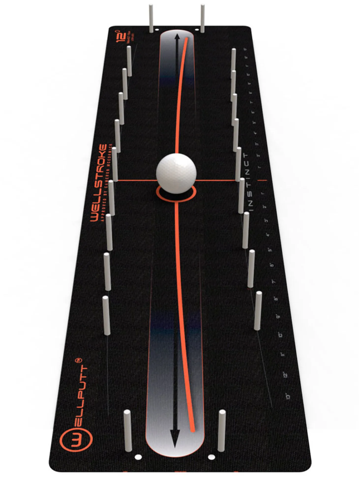 The WellStroke Instinct 18 Degree Arc Mat taps into your subconscious for a deep training experience. The motion-putting guide acts like lights on an airport runway, giving you a perfect visual of the arc and path your putter should travel back and through in order to roll it where you are looking with solid contact and the touch you intend on delivering.